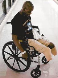 Un giovane coinvolto in pesanti combattimenti nel corso dell’invasione oggi è così debilitato dal disordine da stress post-traumatico da avere continuamente flashback in cui sente l’odore della carne bruciata; non può chiudere gli occhi senza vedere teste umane schiacciate come rane in mezzo alla strada o donne e bambini morti o morenti , bruciati, insanguinati e smembrati. A volte sente il rumore della battaglia attorno a sé ed è già stato ricoverato due volte per tendenze suicide. L’ultima volta che è stato a casa in licenza, questo uomo di 27 anni strisciava fino alla stanza della madre, la notte, e piangeva per ore tra le sue braccia. Invece di ricevere le cure per lo stress, è stato congedato “con disonore” dall’Esercito. Il resto della sua unità tornerà in Iraq a febbraio.