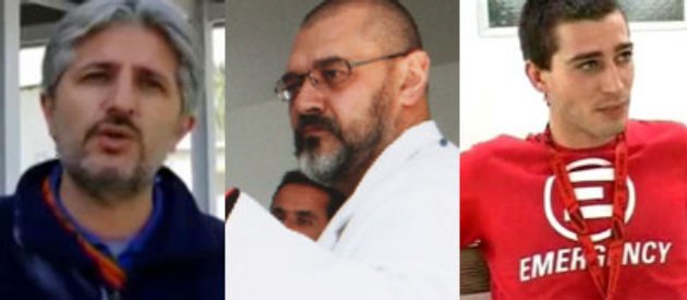 I 3 operatori italiani di Emergency: l’infermiere Matteo Dell’Aira (coordinatore medico), il chirurgo d’urgenza Marco Garatti, veterano dell’Afghanistan e il tecnico della logistica Pagani, si trovano ancora sotto sequestro da parte dei servizi di sicurezza di Karzai, burattino afgano in mano ai trafficanti d’oppio e all’esercito USA.
