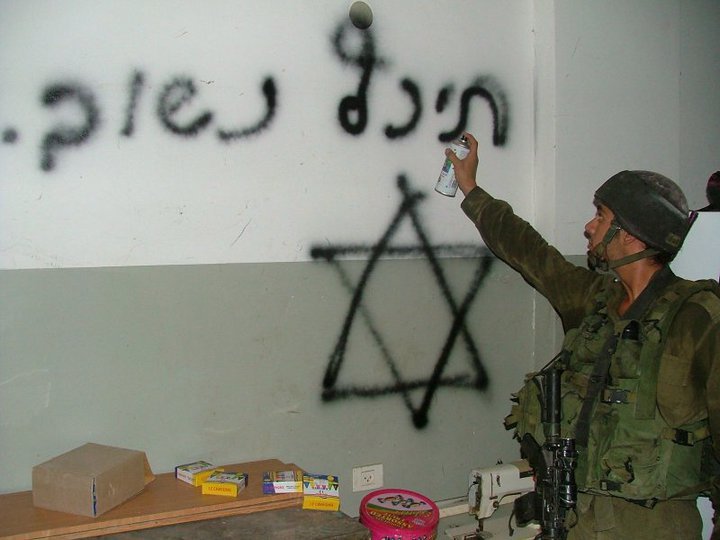 Soldato israeliano imbratta di graffiti il muro di una casa di Gaza durante Piombo Fuso, scrivendo: “torneremo presto”