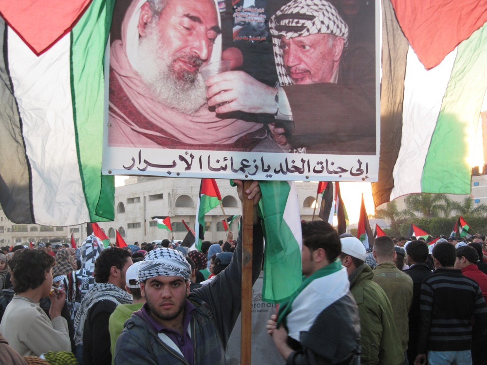 Se l’icona della rivoluzione tunisina è stato Mohamed Bouaziz, giovane disoccupato che si è dato fuoco davanti al palazzo del suo comune, e il simbolo della rivoluzione egiziana è Khaled Said, ucciso dalle forze di polizia di Mubarak, la foto emblema dell’anima del movimento 15 marzo palestinese è quella che ritrae Yasser Arafat, leader e martire di Fatah, che versa del te’ per Ahmed Yassin, il rais paraplegico e martire di Hamas.